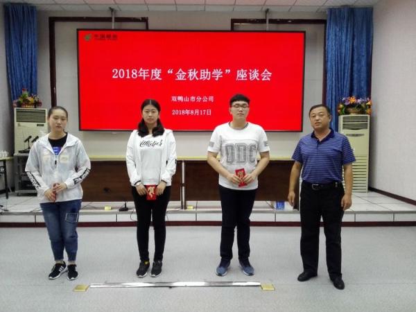2018年8月17日上午,在高考學(xué)子即將步入大學(xué)校門之際,雙鴨山市分公司“金秋助學(xué)”座談會(huì)在市分公司召開。雙鴨山市郵政職工子女中的11名即將步入高校的優(yōu)秀考生和9名困難職工子女獲得了“金秋助學(xué)”助學(xué)金。