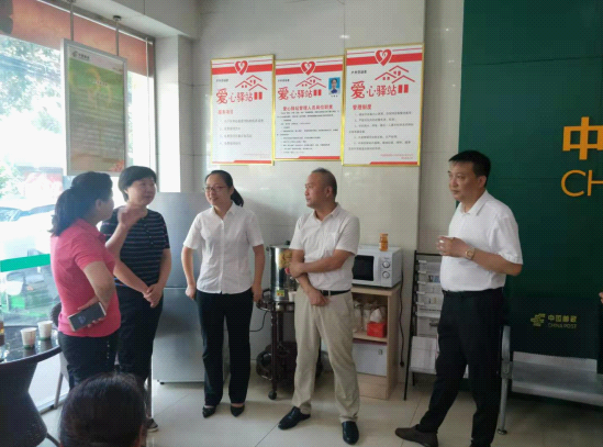 浠水縣分公司副總經(jīng)理、工會(huì)主席董倫向楊主席一行作了建站以來(lái)的工作匯報(bào),驛站的服務(wù)工作得到了楊主席等領(lǐng)導(dǎo)的高度贊揚(yáng),她高興的贊到“郵情驛站,有情有愛(ài)!”。楊主席一行還親切問(wèn)候了現(xiàn)場(chǎng)的環(huán)衛(wèi)工人,大家紛紛贊揚(yáng)愛(ài)心驛站建的好,浠水縣總工會(huì)程兵主席當(dāng)場(chǎng)表態(tài),將在全縣推廣浠水郵政分公司愛(ài)心驛站先進(jìn)經(jīng)驗(yàn),爭(zhēng)取在適合建站的地方建設(shè)更多的“愛(ài)心驛站”,使廣大戶外勞動(dòng)者能夠在辛苦工作期間體會(huì)到工會(huì)“家”的溫馨。