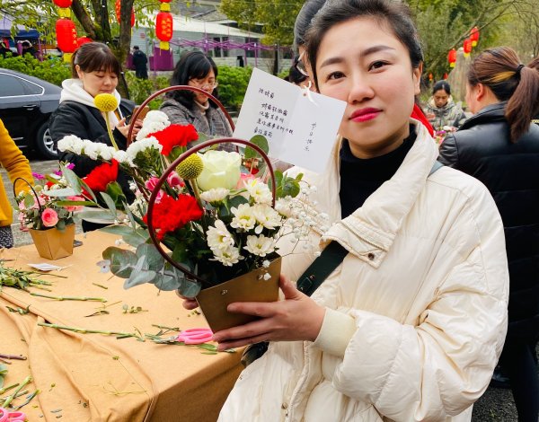 此次活動(dòng)安排兩個(gè)環(huán)節(jié):1、全員參與游戲;2、女職工花藝插花。在女職工花藝插花環(huán)節(jié),花藝?yán)蠋熛冉o大家介紹了一些常見花種、插花基本花型和技巧,并進(jìn)行現(xiàn)場演示。職工們根據(jù)自己的喜好和老師的講解,將手里的鮮花一個(gè)個(gè)插到花籃里,在花藝?yán)蠋煹闹笇?dǎo)下,經(jīng)過1個(gè)多小時(shí)的精心擺弄,一個(gè)個(gè)精美的花籃在員工的手里完成。為讓活動(dòng)更有意義,拉近與大家的距離,分公司副總經(jīng)理兼工會(huì)主席彭文鋒根據(jù)參與人員的性格特點(diǎn),書寫了不同的祝福語,并親手將祝??ㄆ偷絾T工手里,大家滿心歡喜,每個(gè)人臉上都洋溢著幸??鞓返男θ?,最后大家手捧著自己的作品合影留念,場面十分溫馨。
