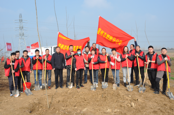 上午8時,大家乘坐大巴一同奔赴宿州城東沱河沿岸植樹點,在領(lǐng)取勞動工具后,三五人一組,分工合作,配合默契。在專業(yè)人員的植樹要領(lǐng)講解和技術(shù)指導(dǎo)下,大家揮鍬鏟土、扶苗植苗、圍堰澆水、培實新土……植樹現(xiàn)場紅旗飄揚、熱火朝天。眾人齊心效率高,經(jīng)過大家近二個小時的勞動,一棵棵樹苗錯落有致、迎風挺立,為春天增添了濃濃的綠意和美好希望。 通過此次活動的開展,提升了員工親近自然、關(guān)愛自然、保護自然的生態(tài)意識,傳播了人與自然和諧共生的理念,掀起了植綠、愛綠、護綠的熱潮;同時,活動增進了交流,加深了感情,強化了團隊協(xié)作意識和凝聚力?;顒咏Y(jié)束后,大家紛紛表示:能通過自己的勞動,打造美麗的生活環(huán)境,是一件意義非凡的事。在將來的工作和生活中會更加愛護樹木、保護綠化,會為共建綠色企業(yè)貢獻自己的力量。