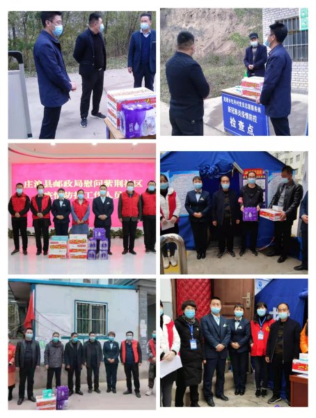 涇川縣郵政分公司到精準(zhǔn)扶貧村及網(wǎng)點(diǎn)服務(wù)半徑重點(diǎn)路口疫情防控卡點(diǎn)進(jìn)行慰問(wèn),送上親情關(guān)懷、純凈水、方便面等生活物資??h公司田建榮總經(jīng)理與卡點(diǎn)重要領(lǐng)導(dǎo)進(jìn)行交流,廣泛宣傳疫情期間郵路暢通無(wú)阻,郵政網(wǎng)點(diǎn)免費(fèi)送口罩等親情服務(wù),歡迎廣大父老鄉(xiāng)親到郵政郵寄蘋(píng)果、參與郵政儲(chǔ)蓄。華亭分公司在支部書(shū)記曹生祥、紀(jì)檢委員葉瑞同志的帶領(lǐng)下,組織全體黨員赴華亭各居民小區(qū)疫情防控值守點(diǎn)開(kāi)展“疫情防控、愛(ài)心助力”華亭分公司在行動(dòng)慰問(wèn)活動(dòng)。華亭分公司走訪慰問(wèn)疫情值守點(diǎn)10個(gè),疫情防控指揮部1個(gè),共贈(zèng)送一次性醫(yī)用外科口罩1000只、84消毒液40瓶、免洗手消毒液40瓶、方便面50箱,還向社區(qū)疫情防控指揮部贈(zèng)送了微波爐、電磁爐、不銹鋼蒸、煮鍋、米、面、油等生活必須品。靈臺(tái)縣分公司朱曉龍總經(jīng)理帶領(lǐng)辦公室,市場(chǎng)部、寄遞主管、金融督導(dǎo)、農(nóng)村網(wǎng)點(diǎn)支局長(zhǎng)對(duì)各村社疫情防疫服務(wù)站點(diǎn),為堅(jiān)守在一線的值班人員進(jìn)行了慰問(wèn)。崆峒區(qū)分公司王曉華總經(jīng)理、莊浪縣分公司樊愿斌總經(jīng)理帶領(lǐng)班子成員和黨員干部到各社區(qū)及村社防疫站點(diǎn)進(jìn)行慰問(wèn),為堅(jiān)守在一線的值班人員送去防疫用品,目前整個(gè)慰問(wèn)工作仍在進(jìn)行中。 全市各級(jí)郵政疫情防控慰問(wèn)工作充分體現(xiàn)了國(guó)家有難、郵政有愛(ài)、國(guó)企擔(dān)當(dāng)。市分公司在廣泛開(kāi)展公益慰問(wèn)的同時(shí),也全面開(kāi)展了生產(chǎn)一線的旺季慰問(wèn)工作,全市各級(jí)郵政單位高度重視疫情防控,科學(xué)防控、合理安排生產(chǎn),做到疫情防控和安全生產(chǎn)兩不誤。以通暢的郵政渠道和服務(wù),為履行好郵政行業(yè)“國(guó)家隊(duì)”的使命擔(dān)當(dāng),為人民群眾做好服務(wù)保障做了最有效的背書(shū)。