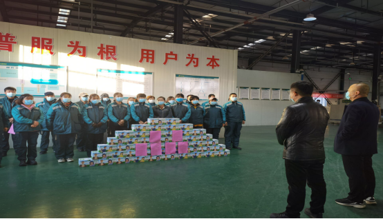關(guān)心員工,開展旺季送溫暖活動。11月12日,嘉峪關(guān)市分公司工會深入各攬投部、郵件處理中心、客服中心慰問一線員工,為奮戰(zhàn)在生產(chǎn)現(xiàn)場的員工們送去了牛奶等慰問品。在慰問現(xiàn)場,針對近期疫情防控形勢和即將到來的旺季生產(chǎn)高峰,王波總經(jīng)理和雷興海副總經(jīng)理詳細詢問了旺季生產(chǎn)經(jīng)營情況,對員工們迎難而上、甘于奉獻的工作精神表示肯定,感謝員工們堅守崗位、連續(xù)作戰(zhàn),充分彰顯了“國家隊的”責任與擔當。叮囑大家一定要首要做好個人防護工作,嚴格執(zhí)行測溫、查碼和登記制度,齊心協(xié)力抓好疫情防控工作。進入冬季,一定要注意行車安全,確保不發(fā)生安全事故。鼓勵大家繼續(xù)發(fā)揚吃苦耐勞的奮斗精神,搶抓旺季營銷機會,做好報刊收訂和生鮮寄遞項目宣傳和營銷工作,確保完成旺季各項生產(chǎn)經(jīng)營任務。