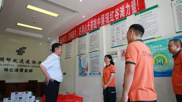 在南昌郵區(qū)中心郵件處理中心,劉斌代表中國郵政集團(tuán)工會(huì),向高溫下依然堅(jiān)守生產(chǎn)一線的郵政員工表示了衷心感謝,并親手送上了慰問品。他叮囑廣大一線郵政員工要合理安排作息時(shí)間,增強(qiáng)安全防護(hù)意識,切實(shí)做好防暑降溫。同時(shí),勉勵(lì)廣大一線員工繼續(xù)發(fā)揚(yáng)敢打硬仗、敢啃硬骨頭的精神,為中國郵政做出新的更大貢獻(xiàn)。