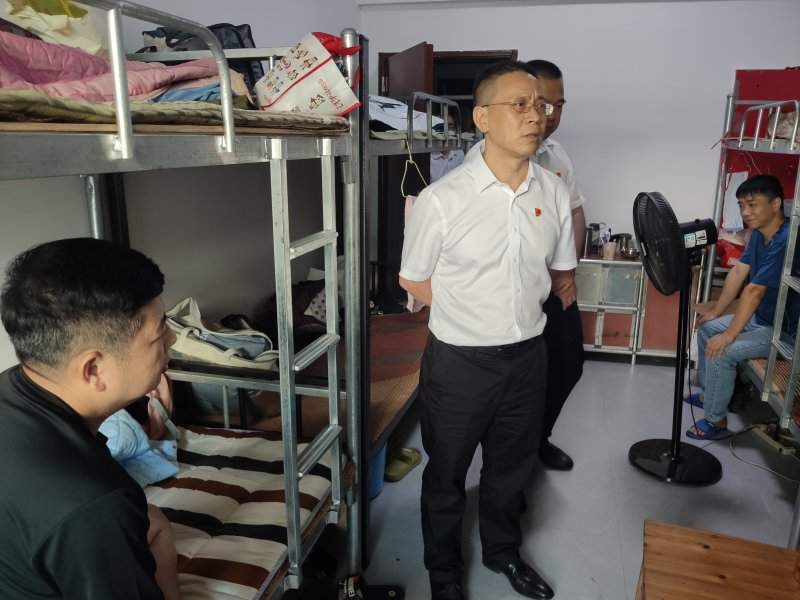 與此同時,慰問組前往新處理中心員工宿舍,了解員工的就餐、住宿等生活情況,傾聽員工的聲音,了解到員工晚餐需要自行解決后,慰問組當(dāng)下協(xié)調(diào)四會局進(jìn)行統(tǒng)一送餐,為員工解決了吃飯問題。慰問組還協(xié)調(diào)處理當(dāng)下宿舍不足的問題,并請運營部會同綜合辦公室加快與物業(yè)公司溝通,做好場地人車分流、噴淋降溫等工作,確保安全生產(chǎn)。以員工需求為導(dǎo)向的貼心舉措,極大鼓舞了中心員工團(tuán)結(jié)一致、擼起袖子加油干的信心!