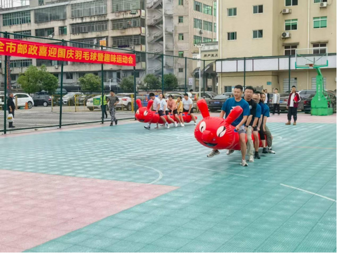 本次活動(dòng)以“喜迎國慶”為主題,精心設(shè)計(jì)了龍行天下、超級(jí)NBA、薪火相傳、同舟共濟(jì)、企鵝跑、足球九宮格、跳長繩、趣味接力賽以及羽毛球等九大趣味與挑戰(zhàn)并存的比賽項(xiàng)目,吸引了全市郵政系統(tǒng)10支代表隊(duì)、共計(jì)200余名職工的熱情參與。