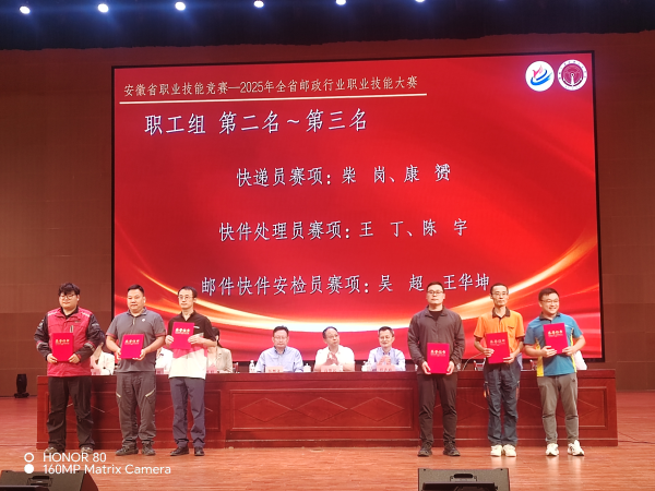 2025年合肥市郵政快遞行業(yè)職業(yè)技能競(jìng)賽于9月20日在安徽交通職業(yè)技術(shù)學(xué)院舉行,合肥市分公司選派2名選手參加比賽。本次競(jìng)賽設(shè)置快遞員、快件處理員、安檢員員三大核心工種,采用“理論知識(shí)+技能操作”雙重考核機(jī)制,全面檢驗(yàn)選手專業(yè)知識(shí)儲(chǔ)備與實(shí)操應(yīng)用水平。賽場(chǎng)上,選手們規(guī)范操作、激烈比拼,展現(xiàn)出扎實(shí)的業(yè)務(wù)功底。經(jīng)過(guò)緊張激烈地比拼,2名選手分別獲得快件處理員項(xiàng)目第二名和快遞員項(xiàng)目第五名。通過(guò)此次競(jìng)賽為企業(yè)搭建了技能交流平臺(tái),有效激發(fā)員工鉆研業(yè)務(wù)的熱情,為郵政企業(yè)高質(zhì)量發(fā)展夯實(shí)人才基礎(chǔ) 。