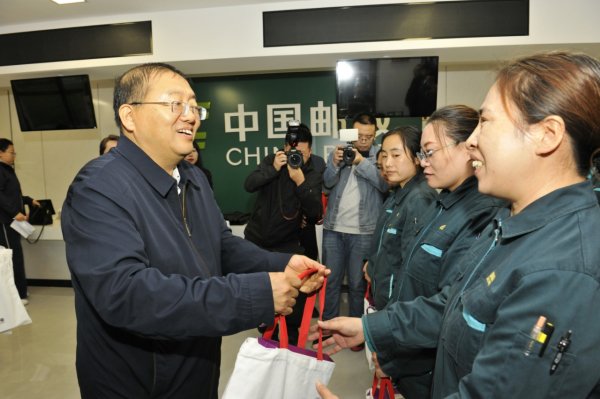 10月9日,在第56屆世界郵政日到來(lái)之際,山西省總工會(huì)黨組書(shū)記、常務(wù)副主席梁敬華一行蒞臨太原國(guó)際郵件互換局,看望慰問(wèn)奮戰(zhàn)在基層一線的郵政員工,為他們送上慰問(wèn)金和慰問(wèn)品,并向廣大郵政員工致以節(jié)日的問(wèn)候和崇高的敬意。省總工會(huì)黨組成員、副主席、省信息業(yè)工會(huì)聯(lián)合會(huì)主席楊曉蘭,省信息業(yè)工會(huì)聯(lián)合會(huì)常務(wù)副主席何燕,及省分公司黨委書(shū)記、總經(jīng)理劉軍亞,副總經(jīng)理、工會(huì)主席李永生陪同慰問(wèn)。