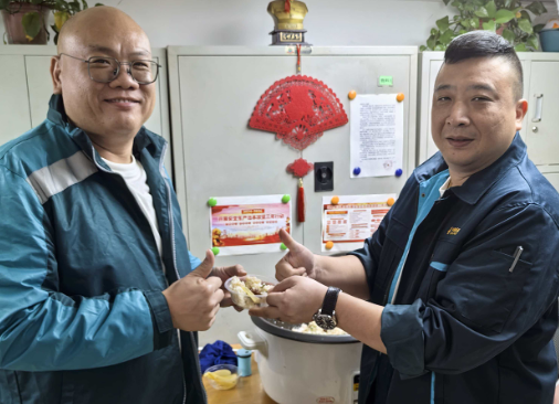 作為黨員、退伍軍人,曾丙妥在部隊(duì)習(xí)得的烹飪技能,如今成了服務(wù)同事的“暖心法寶”。每年旺季,他都主動(dòng)報(bào)名參與工會(huì)慰問(wèn)活動(dòng),親手為一線員工送上熱湯熱面?!霸卩]政工作21年,我親眼見證工會(huì)對(duì)員工的關(guān)愛一年比一年細(xì)致。這份溫暖,值得我們用實(shí)干去回報(bào)!”